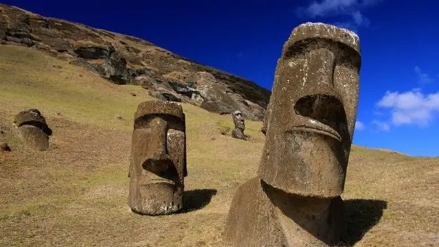 Pulau yang terletak di tenggara Lautan Pasifik ini terkenal dengan 900 patung batu gergasi bernama Moai. Terdapat 887 patung Moai yang diketahui, yang paling tinggi ialah 21 meter dan berat lebih 160 tan.
