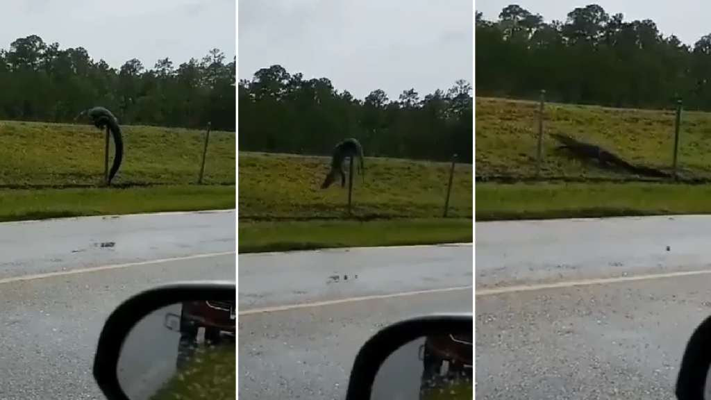 JACKSONVILLE, Florida – Seekor aligator bersaiz besar dirakam memanjat pagar dawai tinggi di Florida pada Sabtu lalu, demikian menurut akhbar Daily Mail.