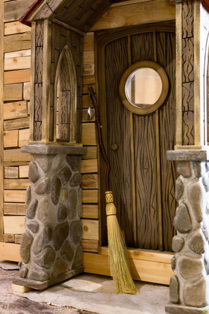 Dan jika diluar tidak kelihatan cukup impresif dengan jambatan kayu, swing set dan slaid, playhouse itu juga mempunyai Platform 9¾, Hogwarts, kedai tongkat Ollivander, sebuah almari di bawah tangga dan sebahagian dari Privet Drive.