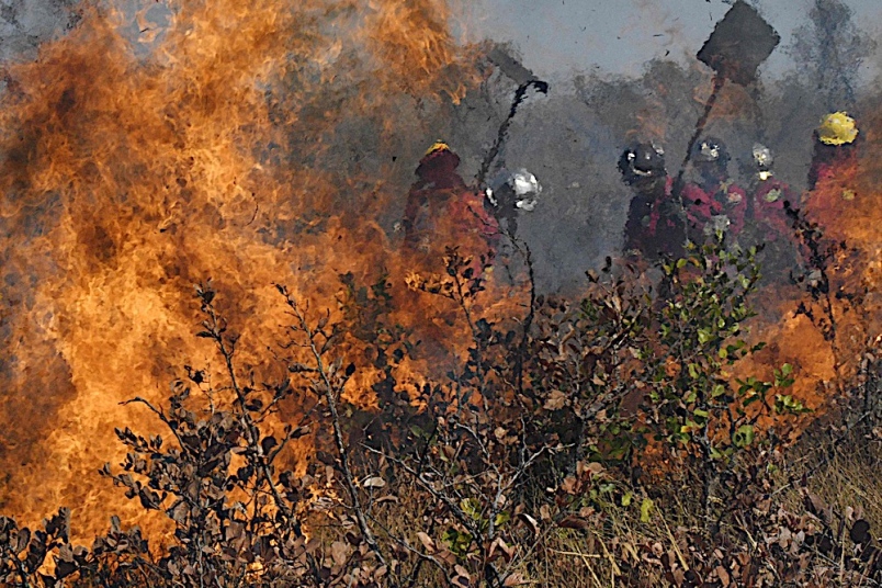 ANGGOTA bomba bertungkus-lumus mengawal kebakaran hutan berhampiran Charagua,Bolivia pada 29 Ogos lalu. -AFP