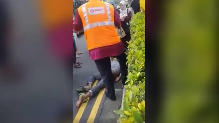 Satu rakaman video yang tular di media sosial menunjukkan seorang lelaki tertiarap di jalan raya, dikelilingi orang awam dan seorang lelaki yang memakai jaket SMRT.