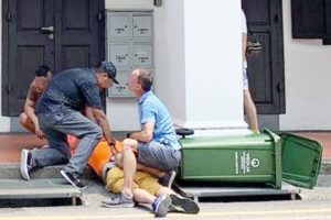 Orang awam menolong menangkap lelaki yang dipercayai merakam video bawah skirt seorang wanita pada 1 November. – Foto SHIN MIN DAILY NEWS