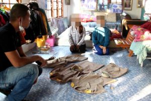 Kannanat 39, diinterogasi kerana didakwa mengambil anak perempuan cacat mentalnya untuk tidur dengan mereka dan kemudian memeras wang dari mereka. Polis merampas pakaian seragam kerajaan dari rumahnya di Udon Thani. (Gambar oleh Yutthapong Kamnodnae)